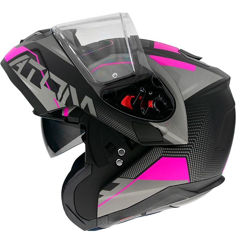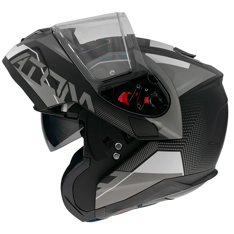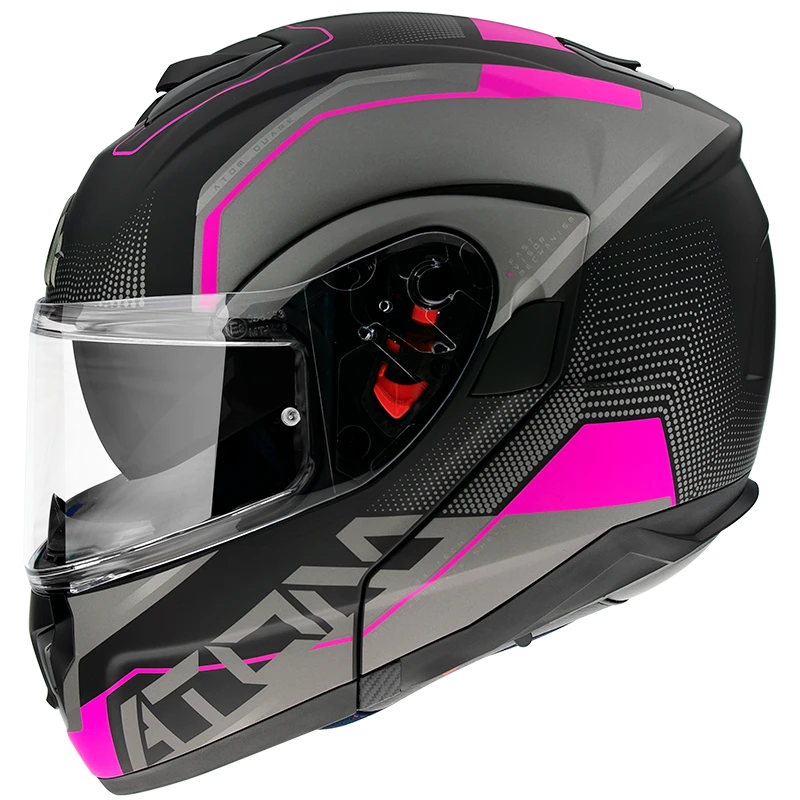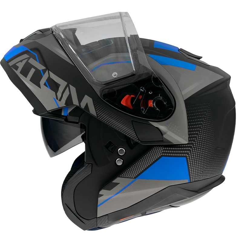 The polycarbonate model with two shell sizes. Excellence helmet for long distance riders. Vents and spoiler for great ventilation in any position on the bike. Visor with lock system mechanism. Anti-scratch visor with fast removing system. Micrometric buckle. Includes Pinlock original. Washable anatomical inner lining for a better commodity and comfort.