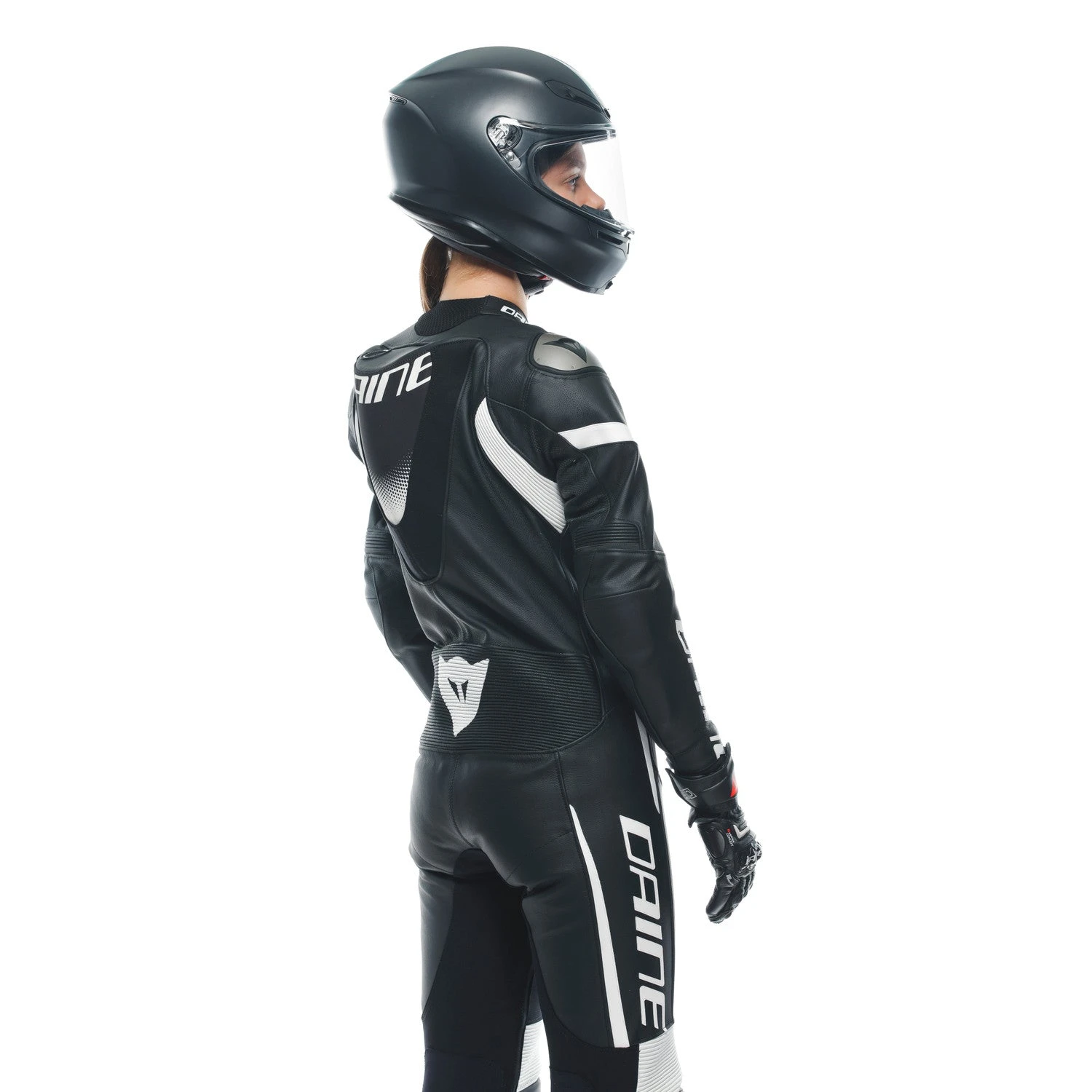 - Leather motorcycle suit with localized perforation and dedicated female fit. Extremely protective and comfortable due to the composite protectors and stretch inserts. Suitable for the track riding.