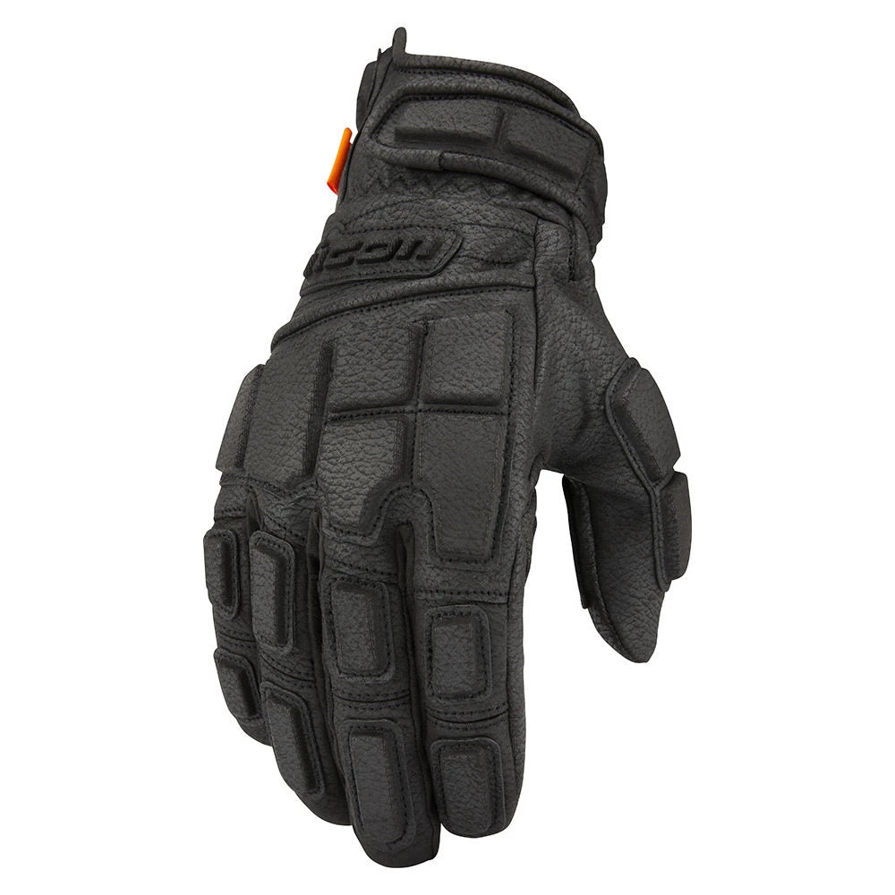 The ICON Motorhead3 glove features an Ax® Laredo synthetic chassis for its hide-like feel and positive control feedback. D3O inserts throughout the glove provide the significant coverage required for the premier street battle dress. Hook and loop wrist closure allows for easy on/off as well as adjustability for comfort.