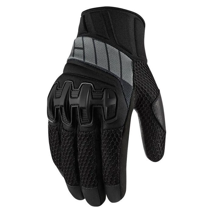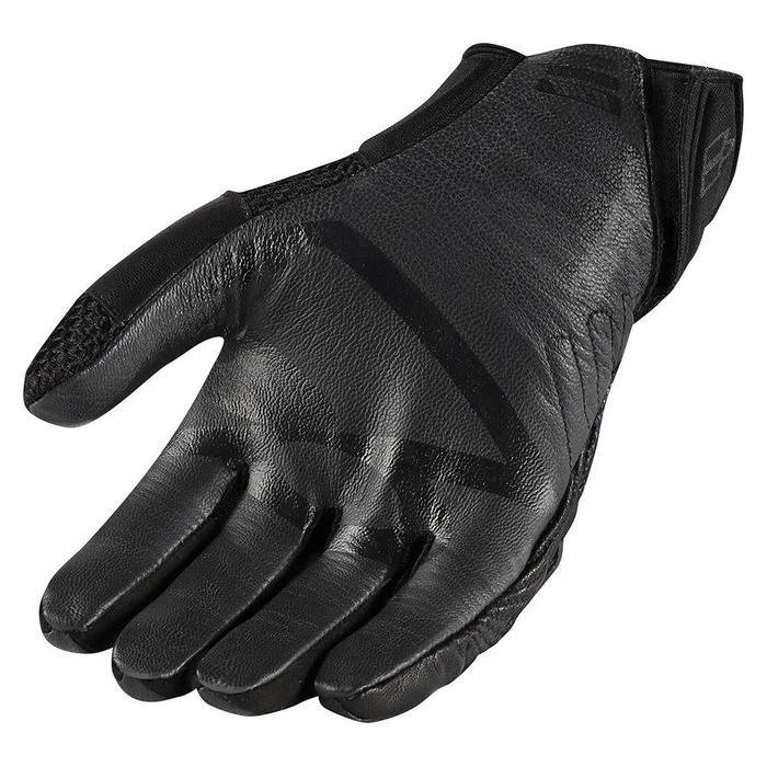 The Overlord Mesh Glove features a combination of materials enlisted for their unique fit and function properties. The chassis is a combination of 3D airmesh, molded neoprene, and sublimated micromesh – providing excellent flow and flexibility. The knuckle TPR badging and thumb overlays provide overt reinforcement, while subtle touches such as the articulated outer finger and integrated pull-tab provide enhanced dexterity and ease of use. A BattleHideâ„¢ goatskin palm with ICON super branding attests to the Overlord’s street legitimacy.