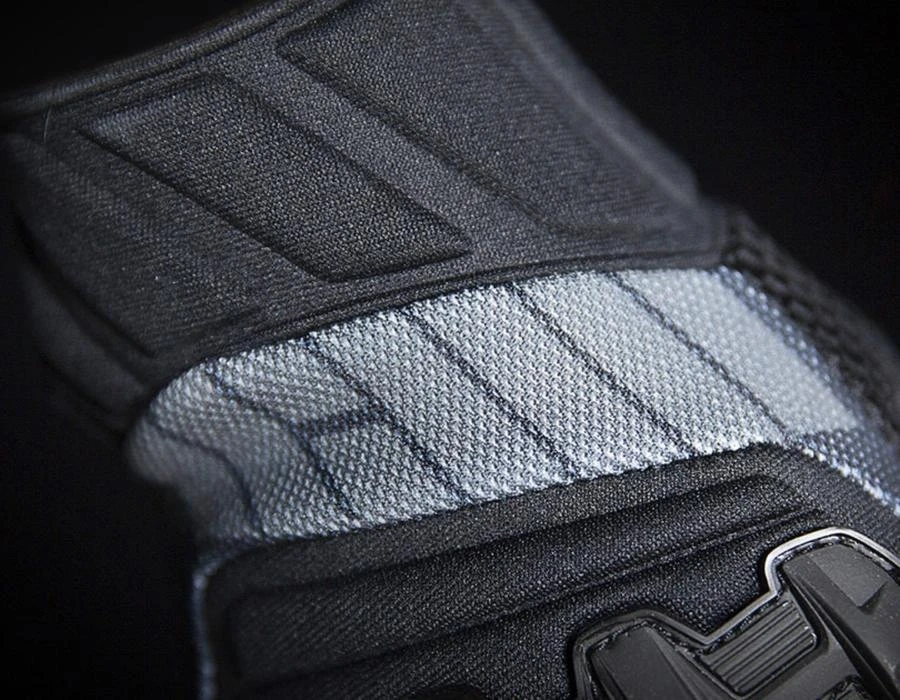 TPR knuckle, Integrated neoprene wrist closure, Articulated finger gusset, Pre-curved fingers. A combination of 3D airmesh, molded neoprene, and sublimated micromesh provide excellent flow and flexibility. Features a custom TPR molded knuckle which provides reinforcement and full range of motion without sacrificing comfort.