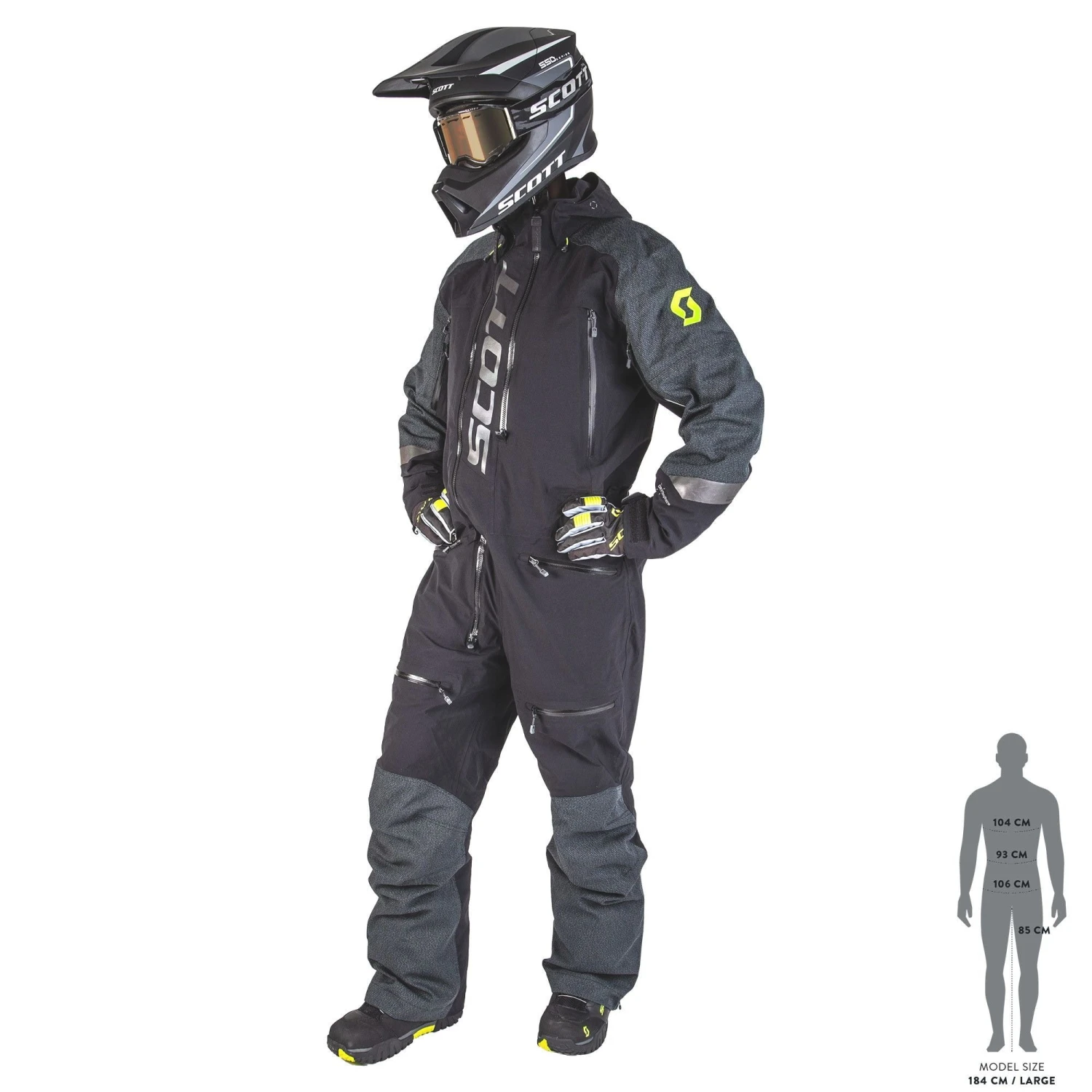 The SCOTT DS Flex Dryo Monosuit is a shell snowmobile monosuit that has been manufactured with full stretch fabric in both the outershell and inner lining to offer riders unparalleled freedom of movement and comfort when snowmobiling. YKK Aquaguard® zippers will work with the cuff and boot gaiters to keep out any unwanted moisture, letting you concentrate fully on your lines. A clean, stylish design finishes off this premium, highly technical snowmobile monosuit.