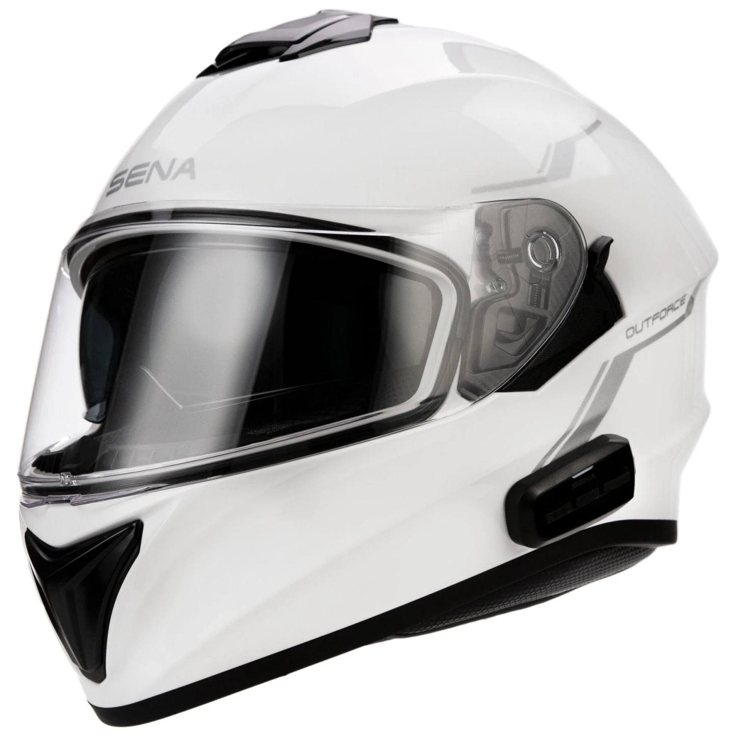 FUNCTION AND CONVENIENCE WITH SENA BLUETOOTH® TECHNOLOGY BUILT RIGHT IN Ready to ride the local twisties on the weekend and then make the commute into work on Monday, the Sena Outforce gives you style for days, and HD audio Bluetooth comms built right in. Straight-from-the-box, you can connect from your smartphone to the helmet via Bluetooth for stereo music playback, phone calls, GPS directions and HD intercom conversations. This fullface smart helmet is packed with style and functionality, the perfect complement for the road.